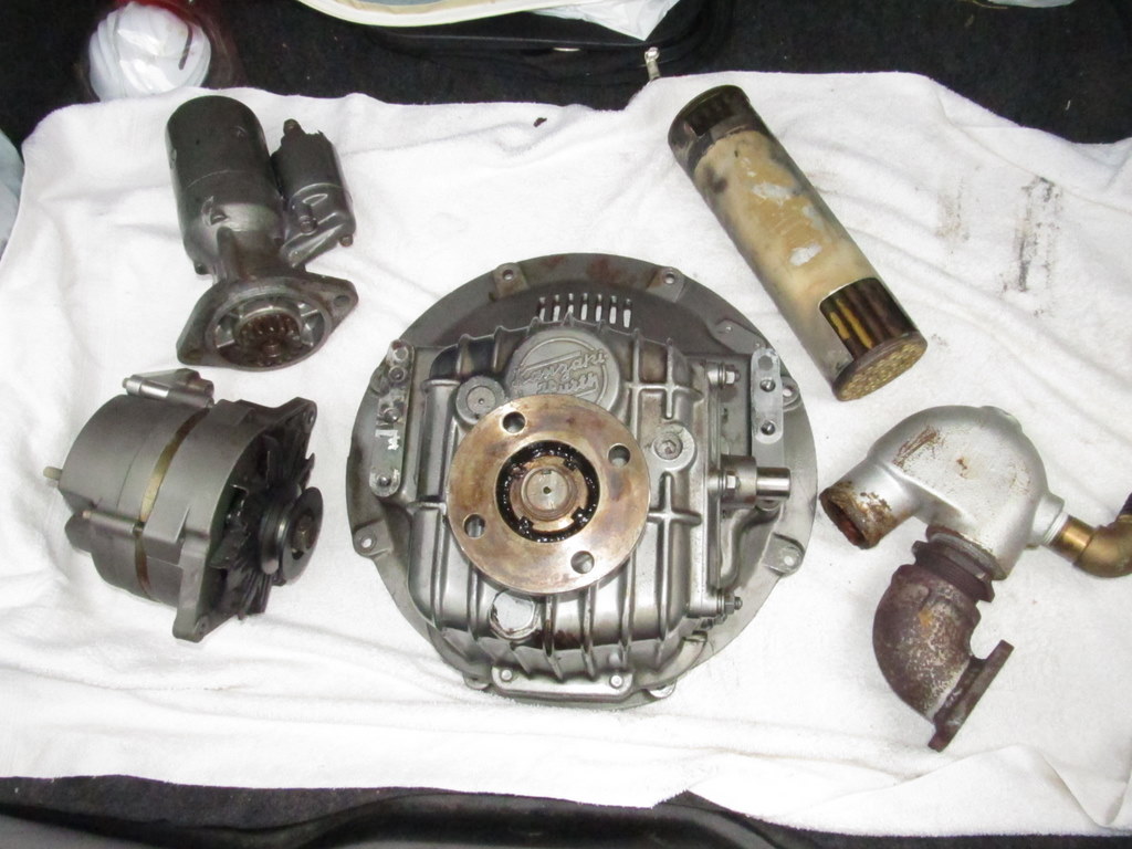 The parts removed: Alternator, Starter, Transmission Heat Exchanger, Mixing Elbow and more…. |