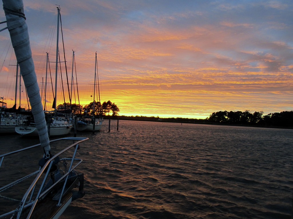 Upon completion, we were treated to this beautiful sunset from our home dock Next Stop….Annapolis Maryland Boat Show and then SOUTH… |