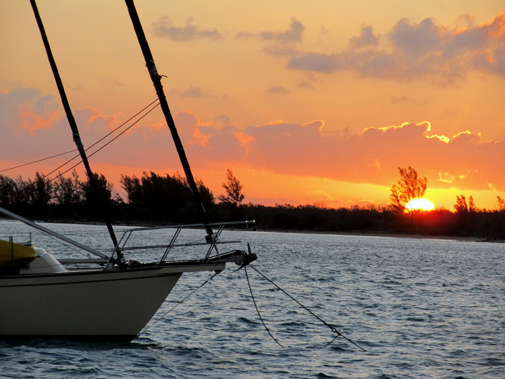 Sunrise over the bow of Island Spirit as we sail for West End, Grand Bahamas Island |