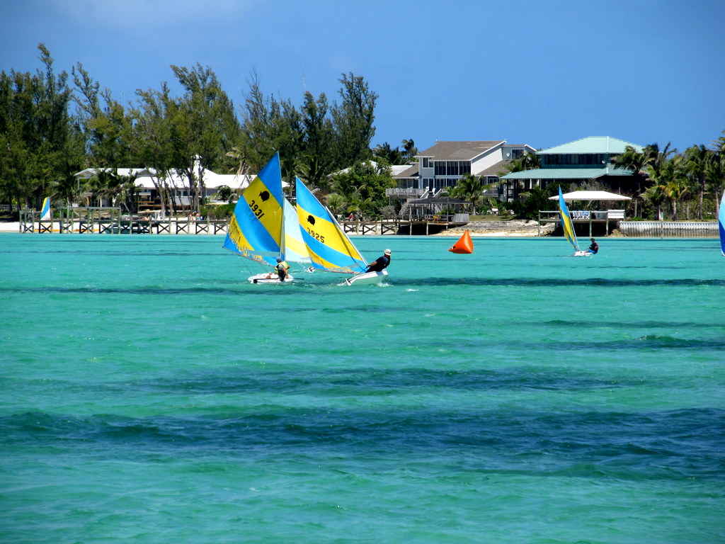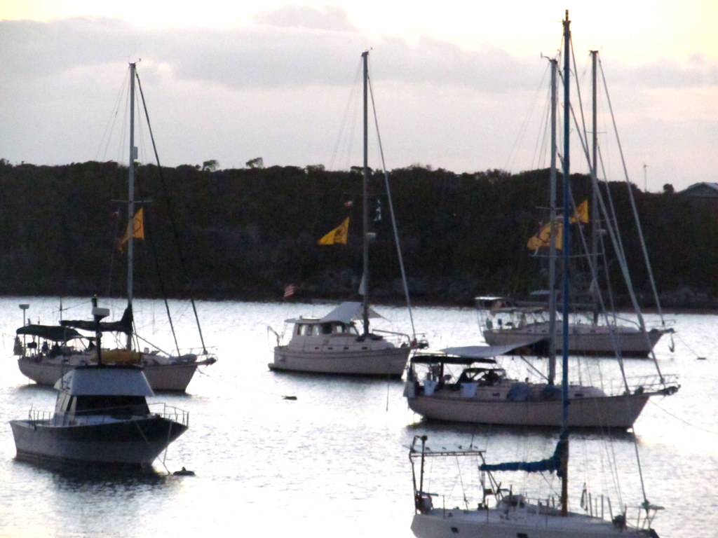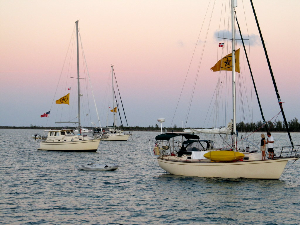 Arriving into West End, we hoisted the solid yellow Q Flag, meaning crew and vessel are “quarantined” and have not been cleared into the country. The captain needs to fill out 5,000+ sheets of paper and take all passports and ship’s documents to the customs officer and clear into the country. The customs officer reviewed our papers and passports and collected our fees and gave us a 90 day cruising permit to explore all the Bahama Islands. We plan to explore the Abacos for the next two months!y All our buddy boats, Catspaw, Cutter Loose, Dragon’s Toy, Flatlander and Lark, arrived safely and we enjoyed the pool, the beach and the Tiki Hut Bar and Grill.