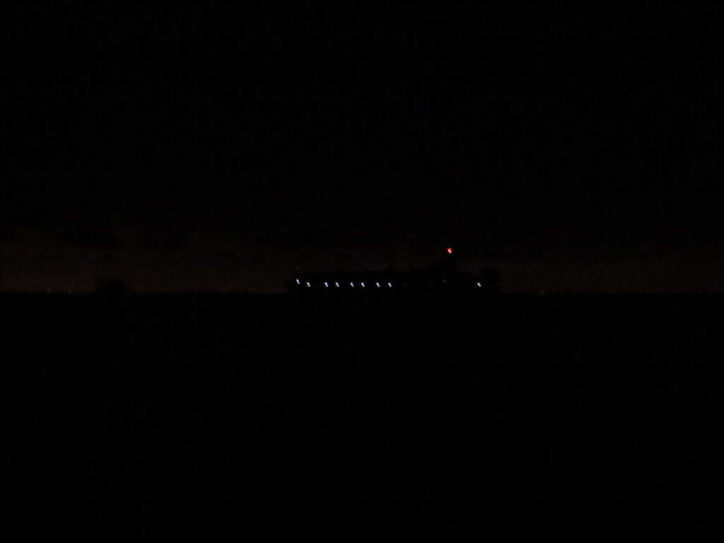 Departing Miami at 2am, its DARK Here is what a well lit 1,000 foot container ship looks like passing us at 17 knots! Stay out of the way….this will NOT stop |
