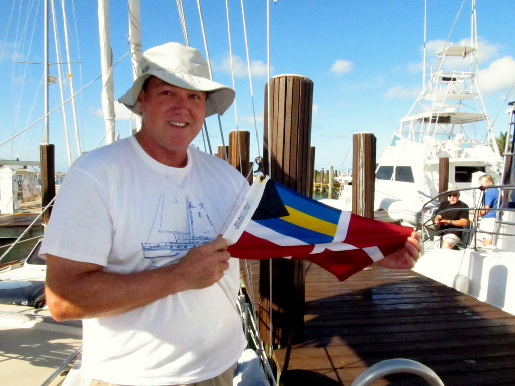 Radeen drops the Q flag and attached the Bahamas flag. The Bahamas flag is flown from the starboard spreader, the US flag remains on the stern. |