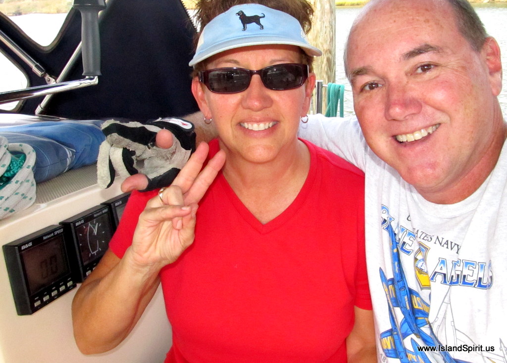 Well, that is what we did. Our boat was in the parking lot just 10 days ago. Within 24 hours after launching, we had guests for 3 days. Lucky for us, they are great friends and helped us get the boat ready for our sail. Provisions were bought and stowed, oil and fuel filters changed, systems all checked and the boat washed and cleaned up. We made a final run to home to check in with a few doctors and our house sitter, then back to the boat for departure. This process is hectic, stressful, and a ton of work, but it is so incredibly rewarding once you are under way!