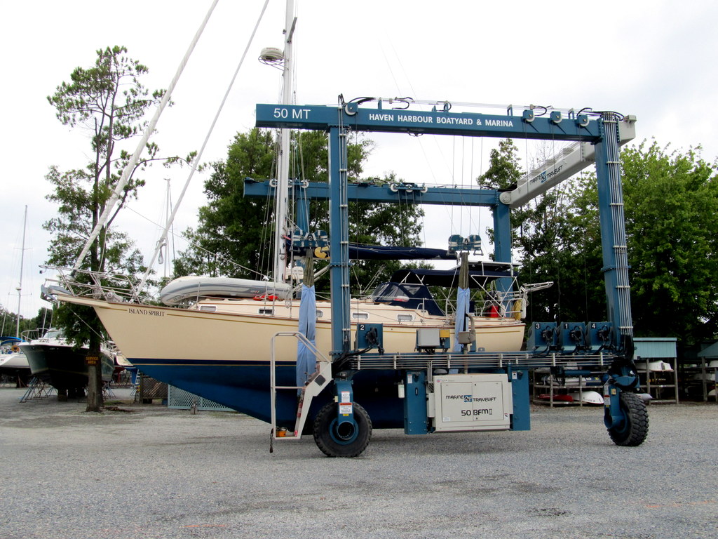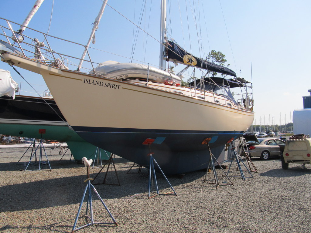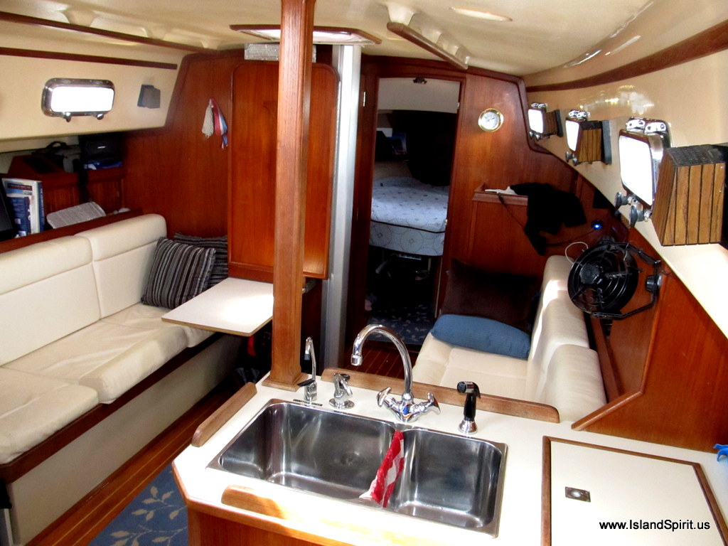 | A well stored boat. 10+ dock carts of stuff all stored and put away. Island Packets hold a lot! |
