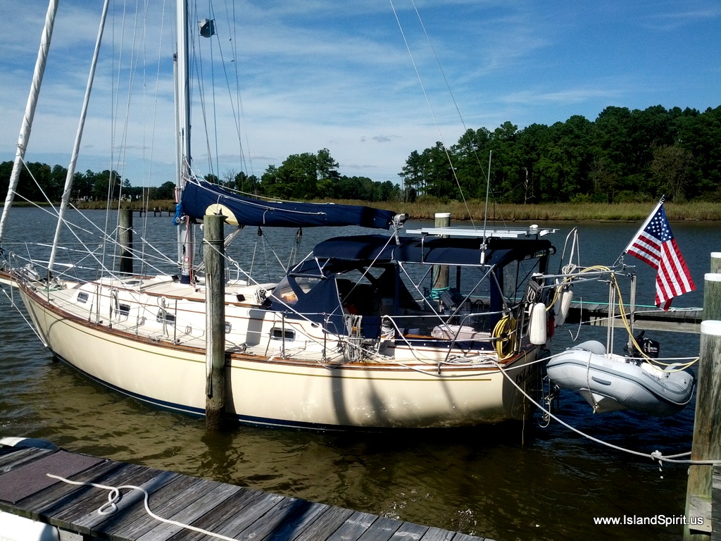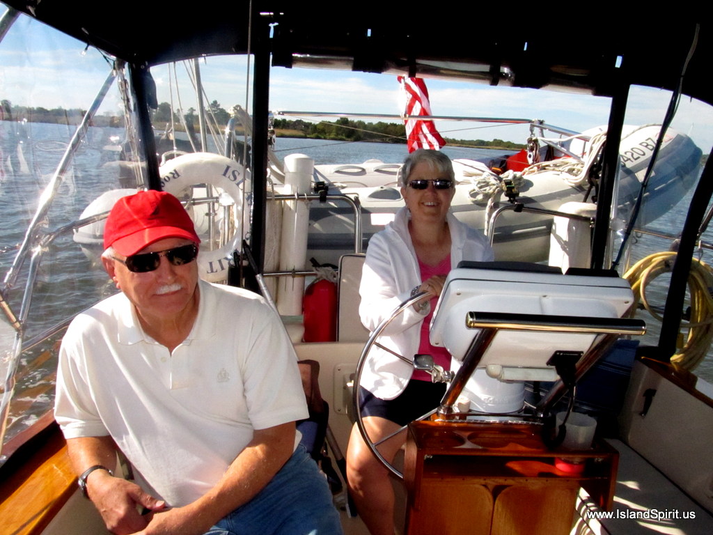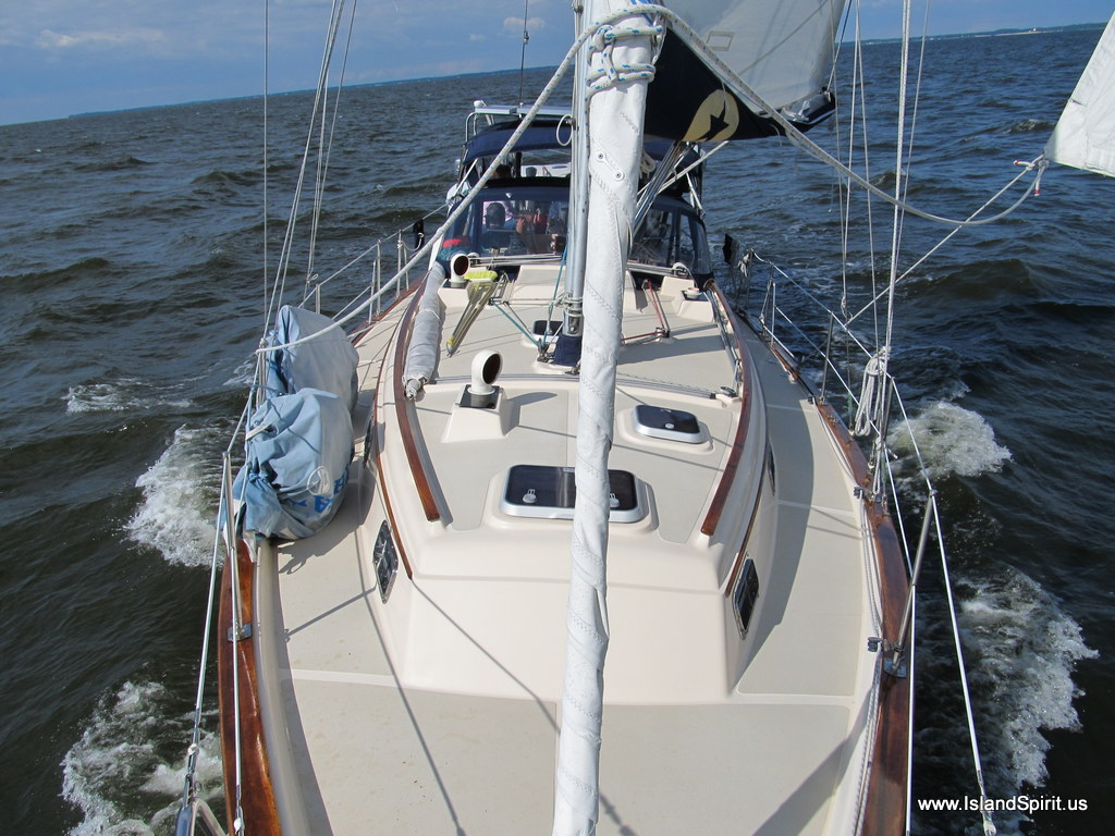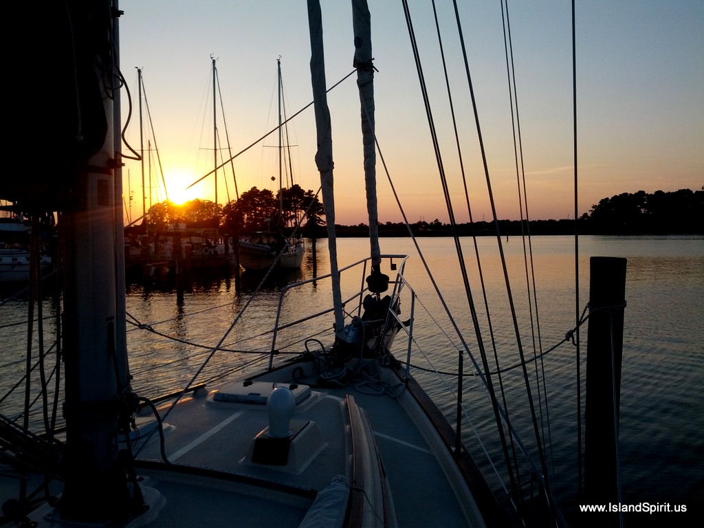 Underway on a coastal cruising sailboat can be very easy. Each person stands a one hour watch driving and watching the waterway. While off watch, you are free to read, write, and surf the web, pay bills, watch the stock market, send emails and write blog posts like this. Our normal transit day is 8-10 hours of running at 6 knots. This will push the boat about 50 miles. Do this for 20 days and you cover 1,000 miles, or Maryland to Florida. Along the way on this coastal trip, you anchor in some beautiful towns and walk, and explore the area. Again, life on a cruising sailboat doing coastal trips is really fun. It simply takes time and we have the time!