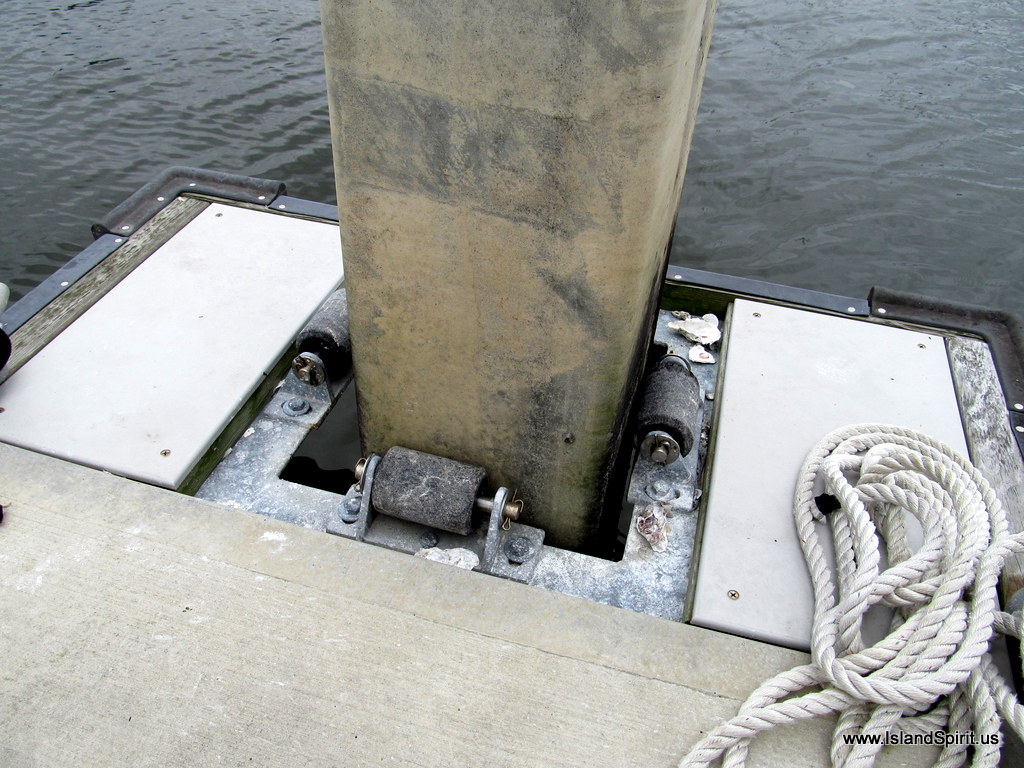 CONCRETE PILINGS! Docks ride up and down via these rollers |