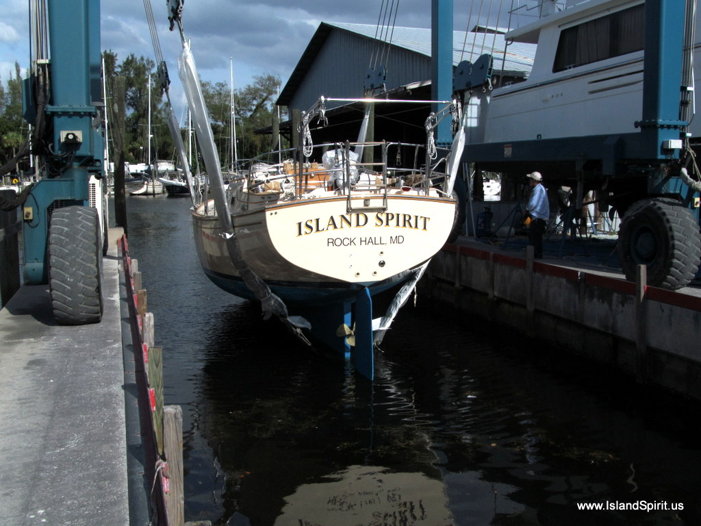 Brushes are cleaned with mineral spirits and then stored in diesel fuel cups. All paints and supplies are stored. The dinghy is lifted back up into the davits and we offload to the car. By now, it is near 4 pm. We drive home in time to hit the pool for some swimming and maybe a sunset walk on the beach before making dinner in the condo kitchen.