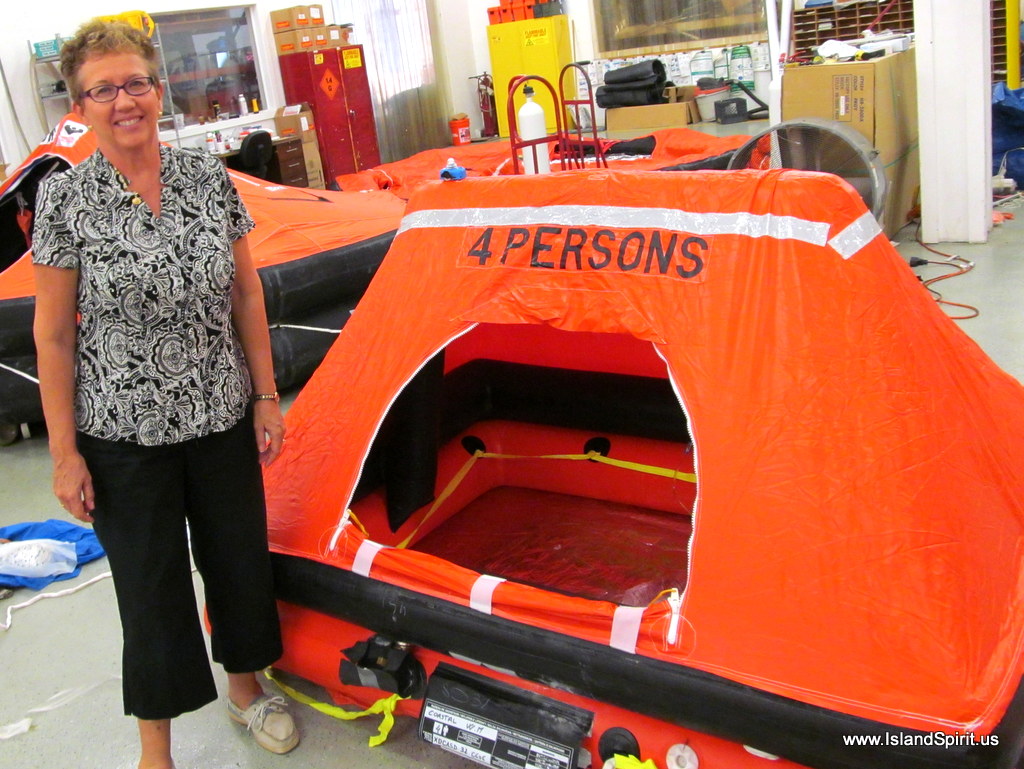 We had several pleasant changes to our routine today due to wonderful cruising friends. We are very grateful to all of them! First, was a surprise visit from Loretta and Jim of IP380 Plan C. Thank you for stopping by! Next, we took our life raft to a Zodiac service center in Tampa. Thanks to a very good friend, Greg, who is loaning us his raft until he buys his next sailboat, we now have a 4 person coastal life raft. See photos below.Thank you, GREG! Our day ended with a lively dinner in St. Pete Beach with Larry and Phyllis, former owners of IP40 LARK. Thank you for fitting us into your busy schedule!