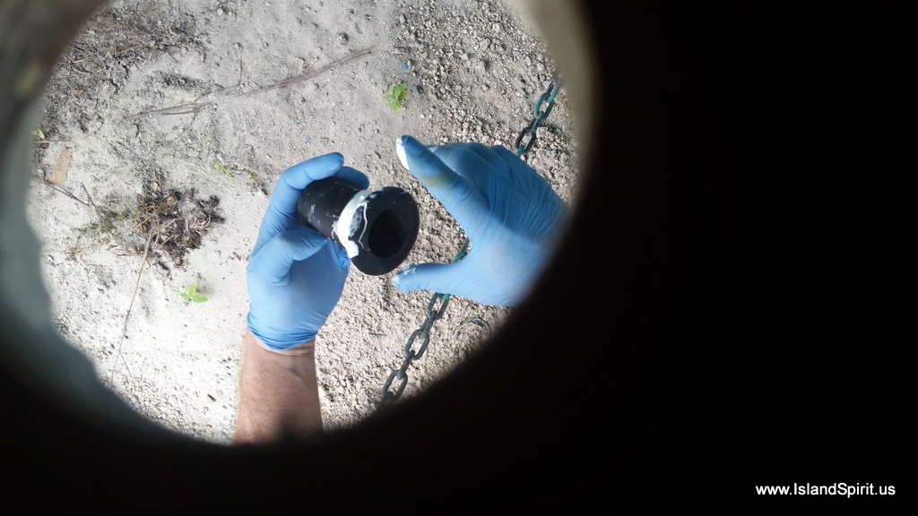 | Radeen took this shot as we installed the new thru hull fitting. |