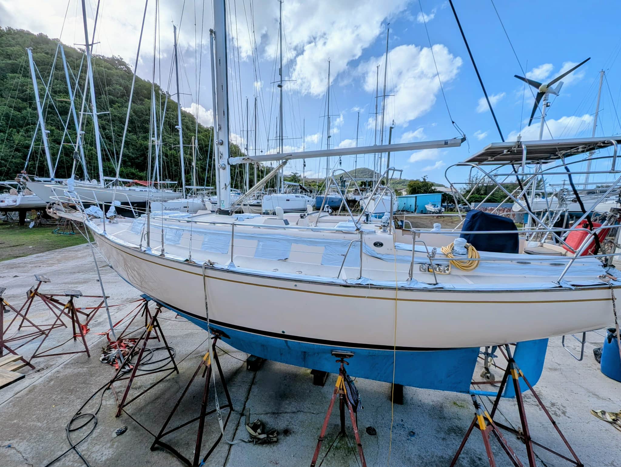 The wonderful asset to our Island Packet Yacht Owners Association is that everyone is so helpful and kind to each other. Anywhere you cruise you will bump into other IPY owners because there are 2,500 of us and WE ARE OUT CRUISING! Thanks to Steve and Maria of 485 Savannah Sky for sending us these photos of the current condition of our boat, Dec 2025. We will be there soon!