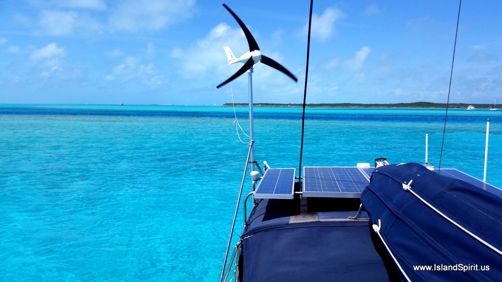 We are working hard on water conservation as we push our 90 gallon water tank to about 11-18 days. This includes taking showers every day using our solar shower, staying hydrated, washing dishes, cleaning the boat and rinsing after swimming. Thanks to our Multi-Pure filter, we drink our boat water. We can get our water usage down to 5 to 8 gallons perday total, so that allows us to go 11 to 18 days at best. After that, we run out of water! No water means we need to exit the park area and go to Staniel Cay Yacht Club, dock, and take on water at fifty cents per gallon. So our 90 gallon water tank costs $45 to fill it up, not bad when you look where we are!