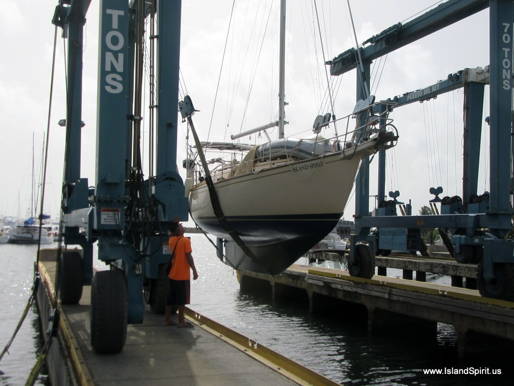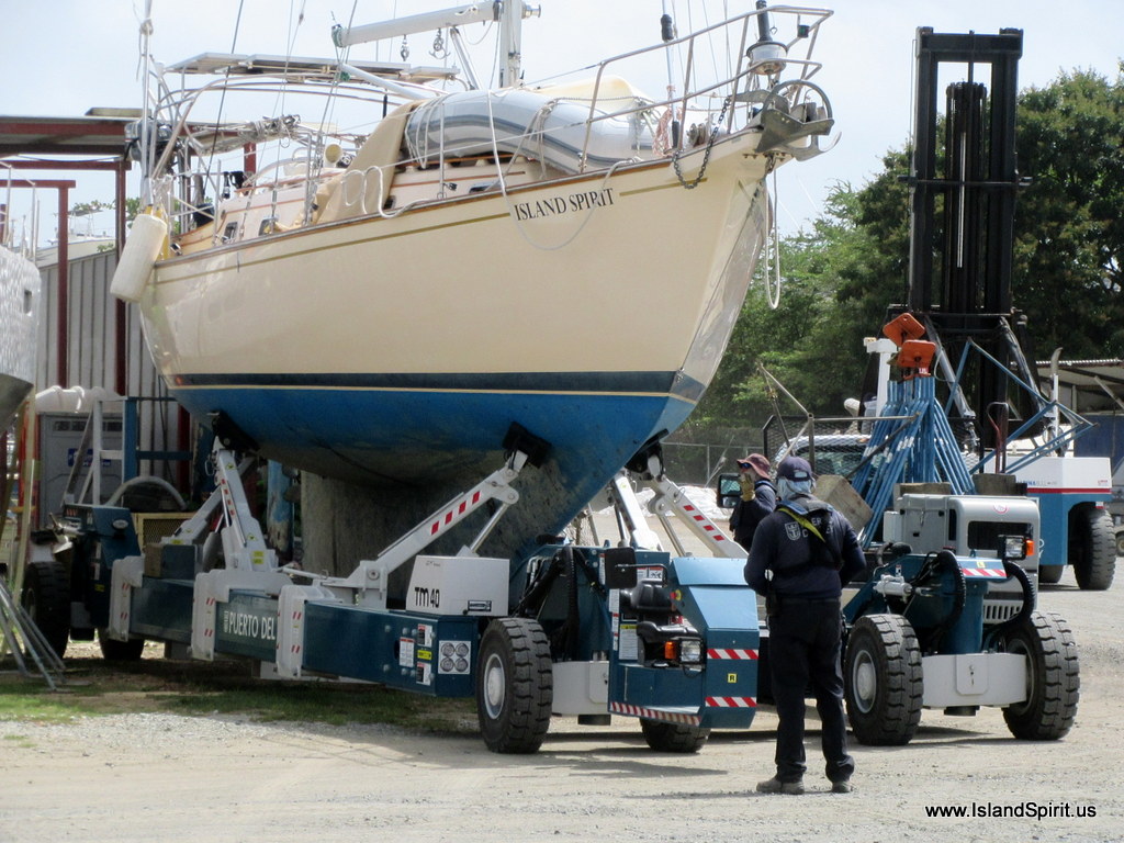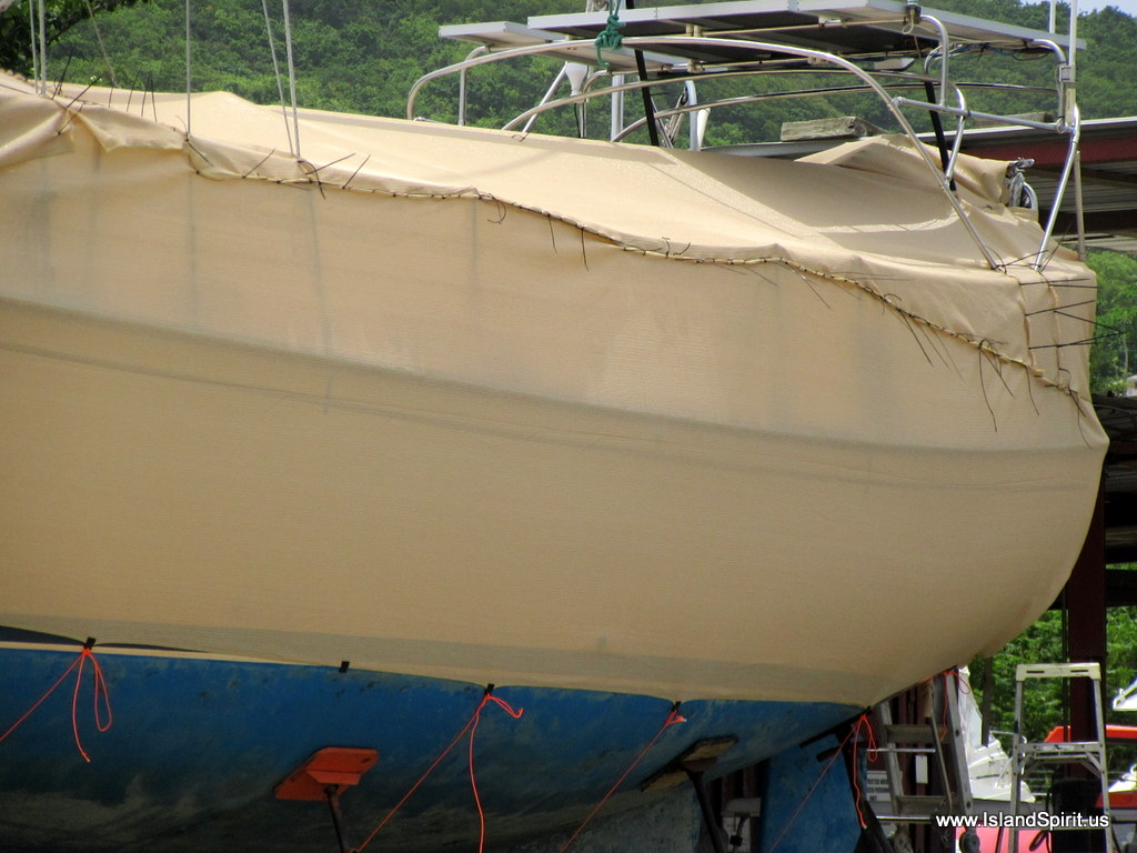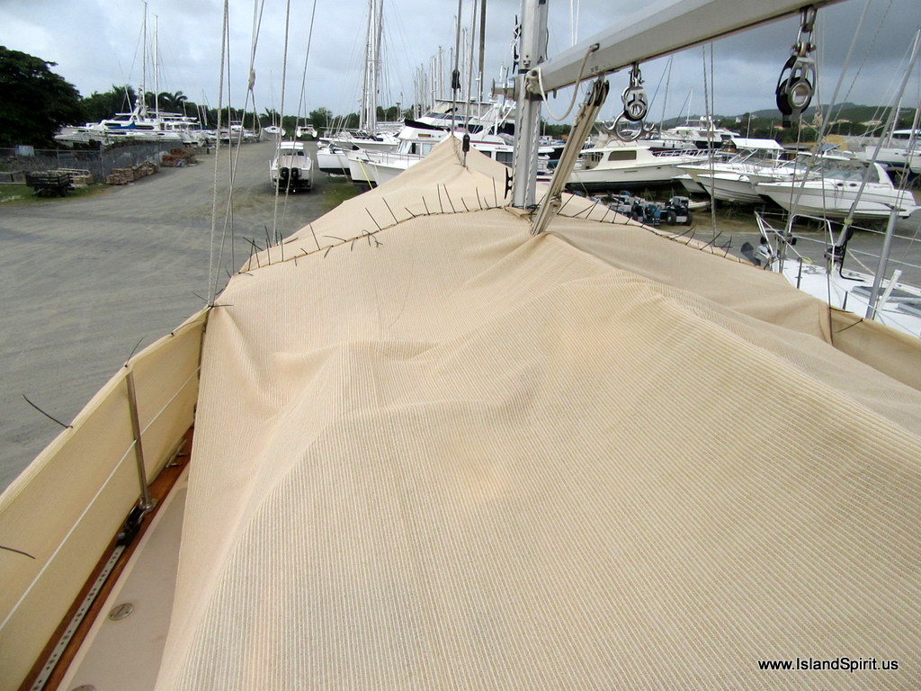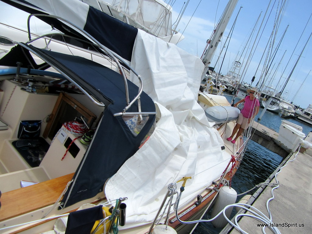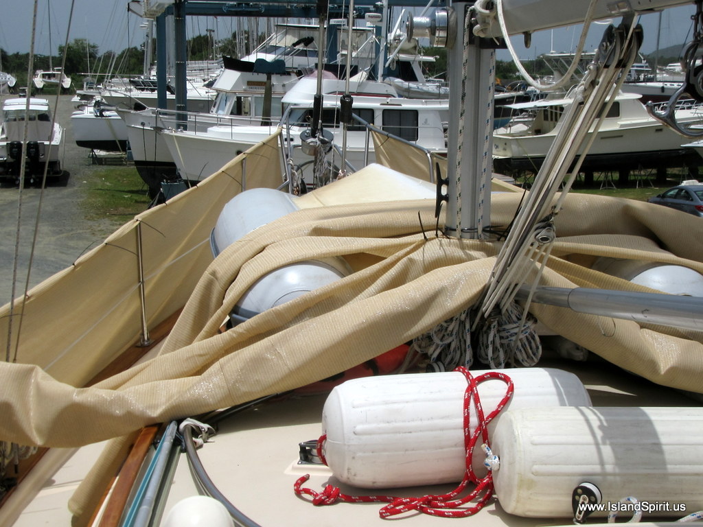 Now that we are docked in Puerto Rico, we have taken off the sails, the canvas, washed the boat and are stuffing everything below decks while we live aboard with this craziness. In a few days, we will haul out. Coolaroo Sun Shade has been shipped in and we are ready to make our second custom cover Monday and Tuesday. For now, we are preparing for haul out and are already missing the joy and peace of the cruising life. We can not wait to relaunch November 6 and get Island Spirit sailing once again.
