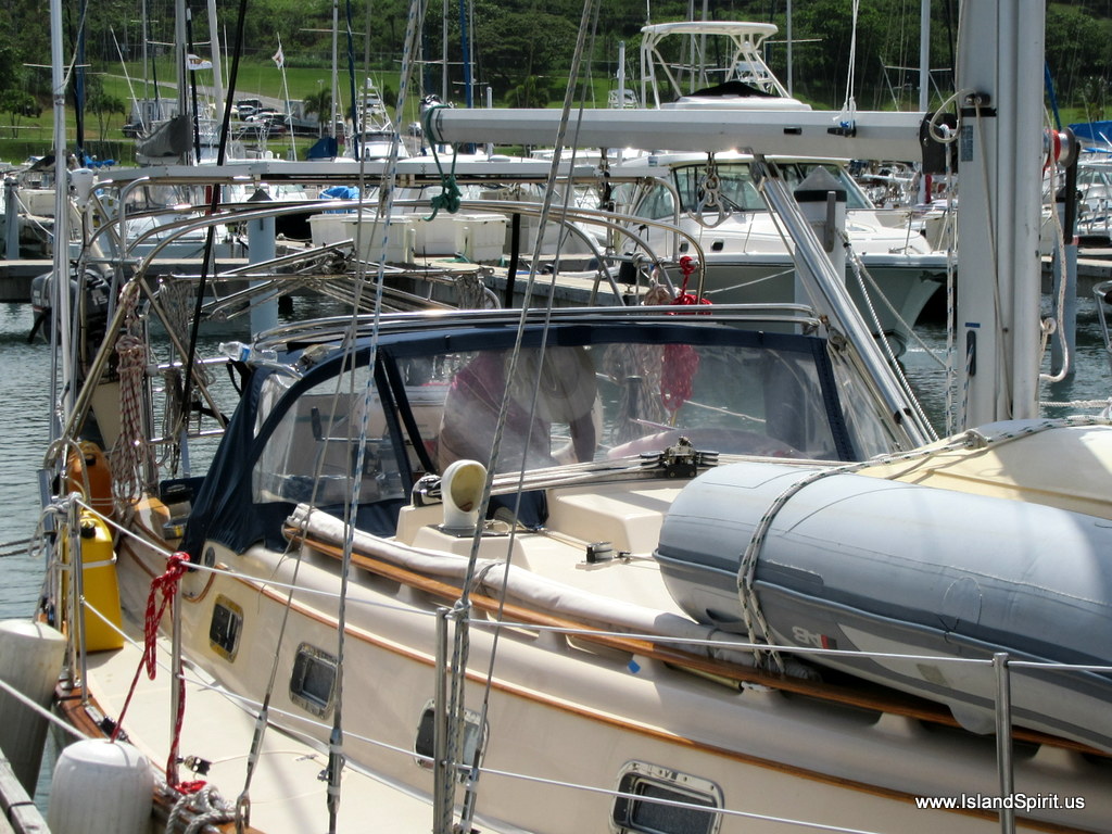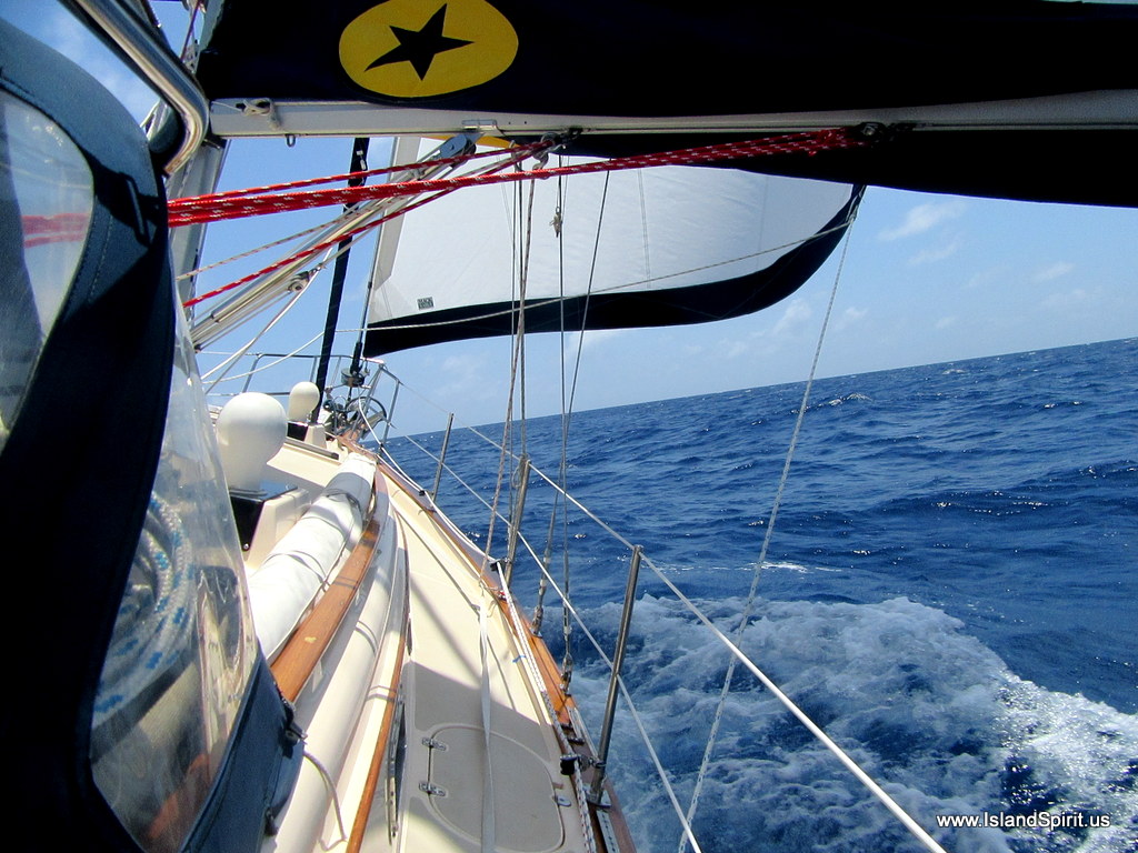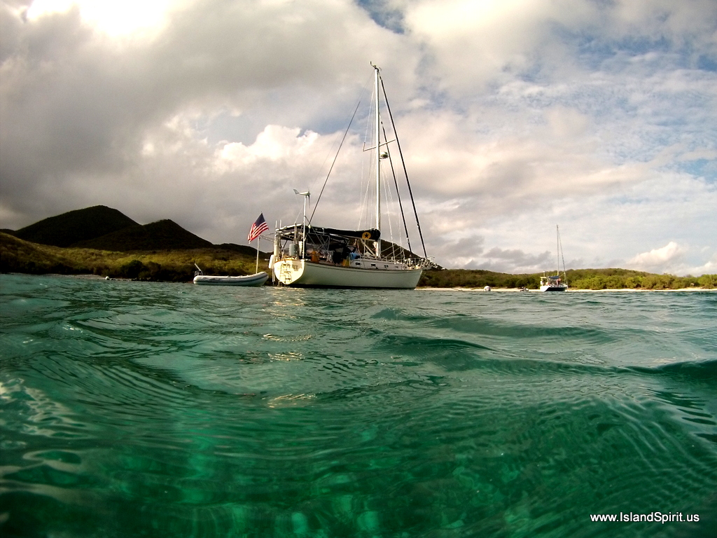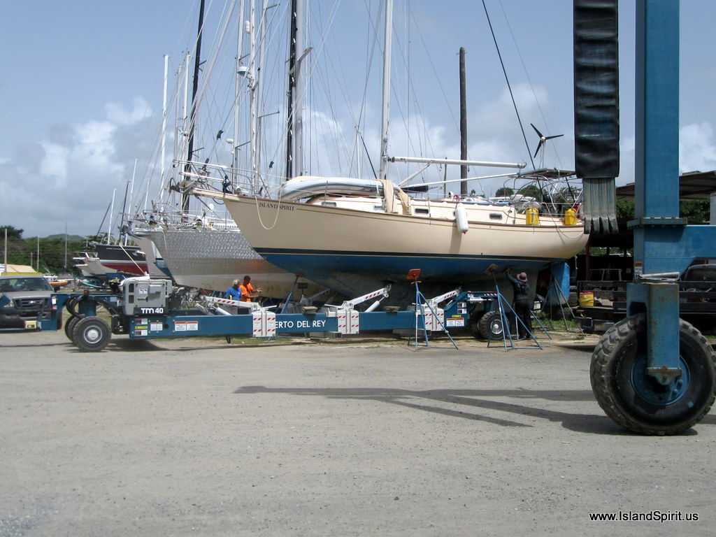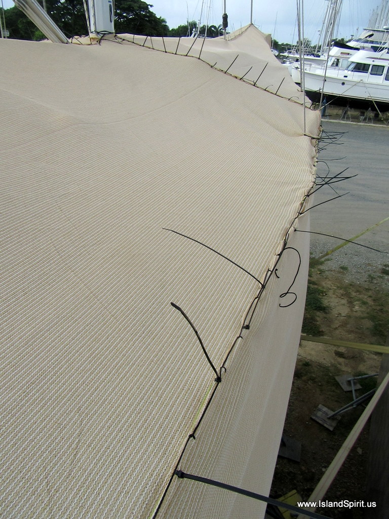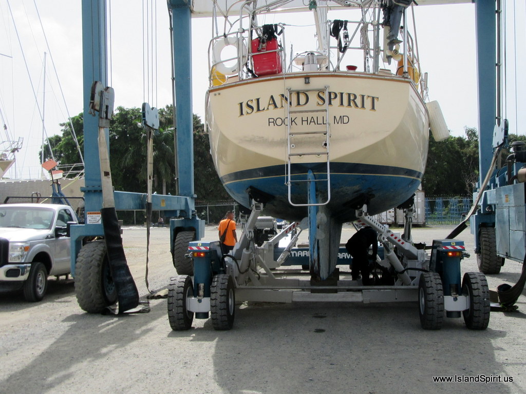 Now that we are docked in Puerto Rico, we have taken off the sails, the canvas, washed the boat and are stuffing everything below decks while we live aboard with this craziness. In a few days, we will haul out. Coolaroo Sun Shade has been shipped in and we are ready to make our second custom cover Monday and Tuesday. For now, we are preparing for haul out and are already missing the joy and peace of the cruising life. We can not wait to relaunch November 6 and get Island Spirit sailing once again.