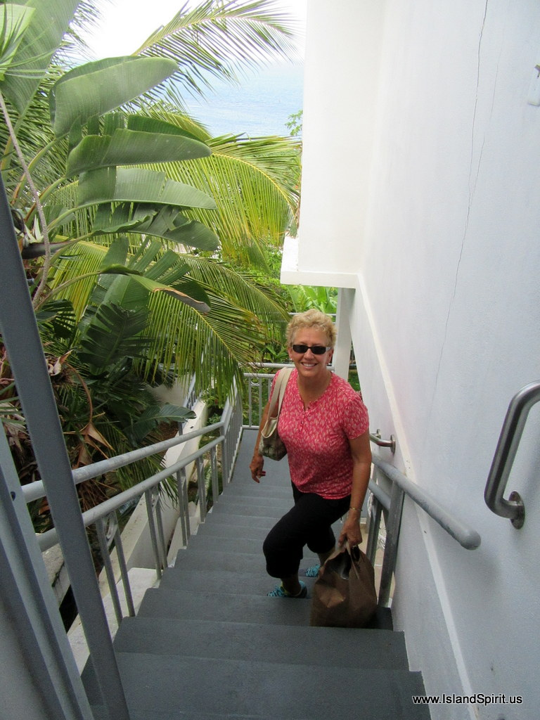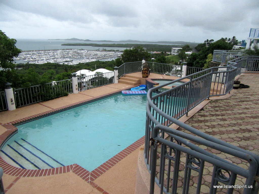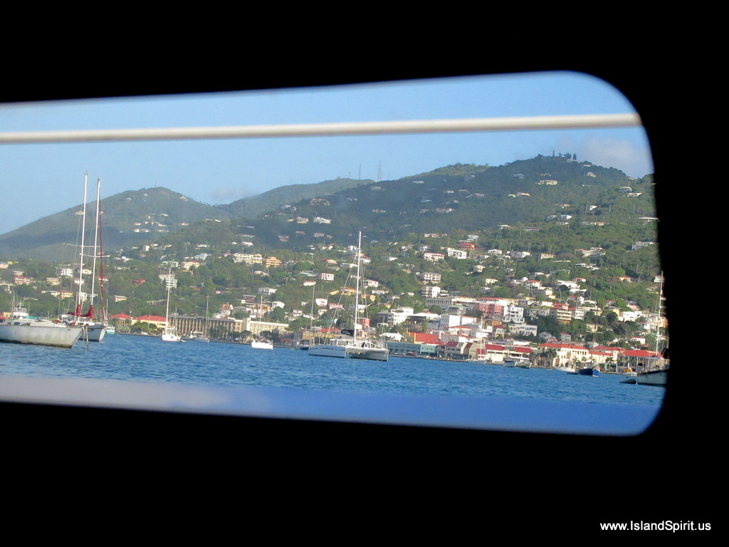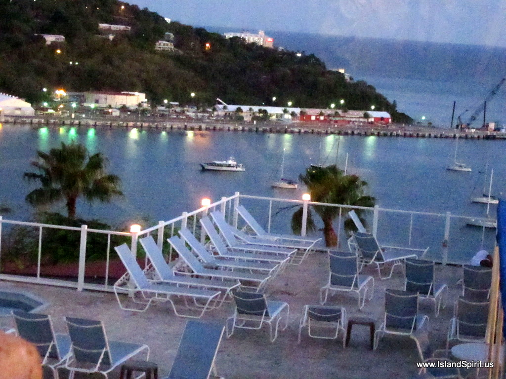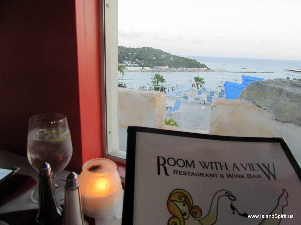 Onward to Charlotte Amalie, St. Thomas. We love to anchor in towns, and here we had this town immediately off our stern. After entering the main harbor, we went directly over to the east corner and dropped the anchor off Yacht Haven Grand. Usually there are one or two cruise ships in port, but lucky for us there were none, so the town was far less crowded. We were enticed by a Facebook ad to head out on a date night to one of the finest restaurants in town called “A Room with a View.” We booked a table for 1830 and enjoyed the best meal of the year! WOW, what a place this was, with excellent service and delicious food. Our table overlooked Island Spirit anchored down in the harbor. See cool photos below.