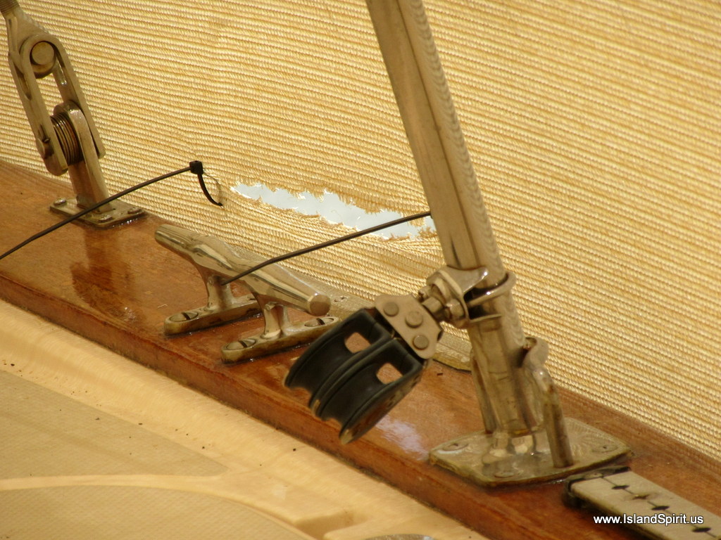 | This year I raised the whisker pole to cover the coils of my new reefing lines |