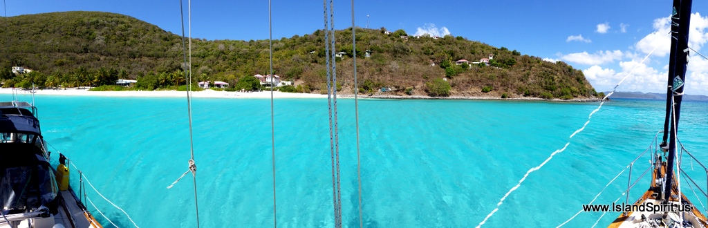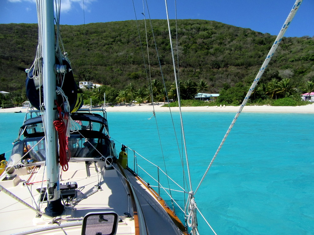 | Beautiful Privateer Bay, anchored at the south end of Norman Island and snorkeling from the boat |