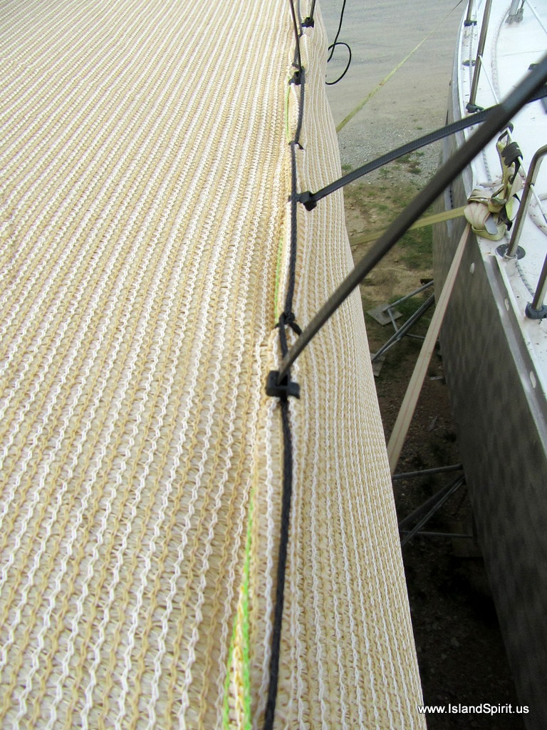 | The 6 ‘ x 40’ sides wire tie to the top life line bow to stern. Very easy |