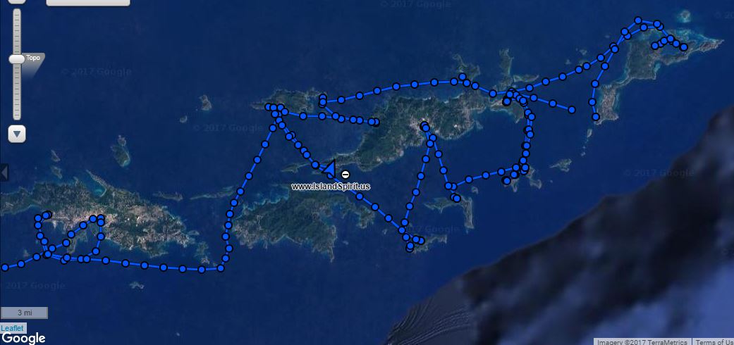 It has been a very very enjoyable British Virgin Islands tour for the first time on OUR OWN boat. For now, it is onto the USVI and back westward….downwind….yahoooo….to Fajardo, Puerto Rico where we will haul out on May 22 and store our boats until Nov. Here is our InReach tracking map of our travels around the Virgin Islands.