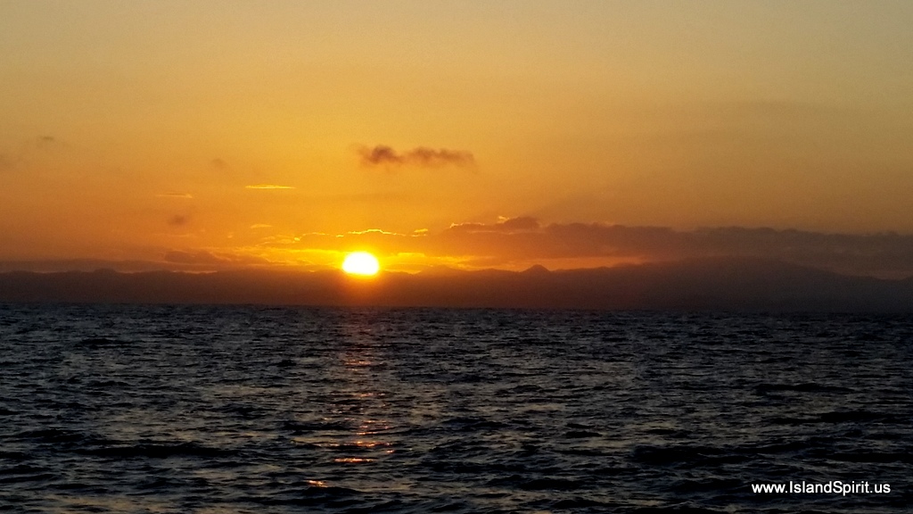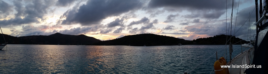 We then dropped the mooring balls and we headed out to Sandy Spit where we could play on the beach, swim, snorkel and enjoy the beautiful waters. The winds were calm, 5-10 knots, but the north swell is building and it is a bit rolly here off the cay where we are spending the night, after watching a spectacular sunset over Jost Van Dyke.