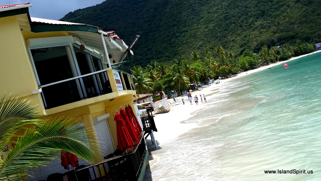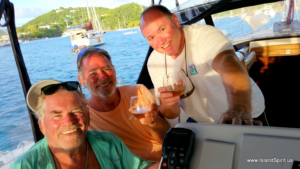 We left St. Thomas on a calm day with 10 knots of southeast winds and continued to push east towards the British Virgin Islands. There are several places to check into the country, and we chose to sail to Jost Van Dyke, using Foxy’s dinghy dock and of course a Carib Beer at Foxy’s. The check in took about 45 minutes of paperwork and processing in a very relaxing manner and friendly manner. Our cost was based on the ship’s gross tonnage and for us at 17,500 pounds that was $21. The maximum fee is $55.