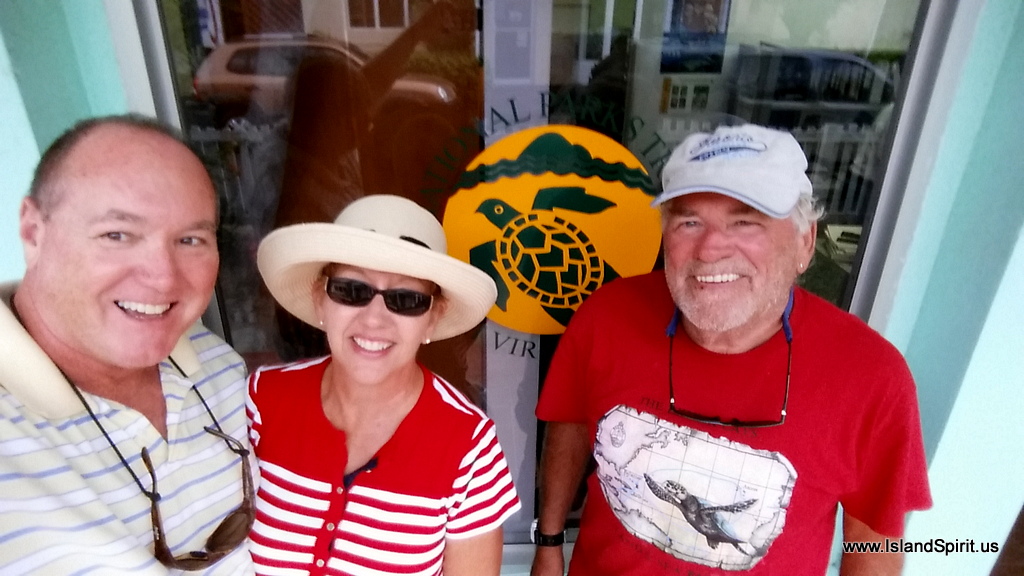 Our first challenge was to buy the one year permit for private vessels that will allow us to use the daytime dive moorings in 70 different locations. When we checked in at Jost Van Dyke, the officials there are only allowed to sell the weekly permits for $50, and not the annual permits. The only place you can buy them is at the BVI National Parks office in Road Town. That would be on the other side of Tortola and we were on the Jost side. No problem, Mon….we moved over to Cane Garden Bay and headed into town where we hired a cab ($24 over and $24 back) and bought the permit at the National Trust Park office. Bill on buddy boat mv/SEA STAR ran along with us to keep us company and to help out. We bought three one year park permits, one for each boat: Fezywig, Sea Star and Island Spirit. This all took about 1.5 hours and we were back to our boats soon after noon……