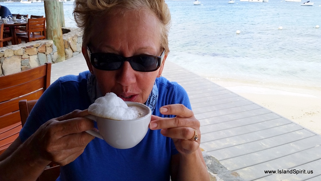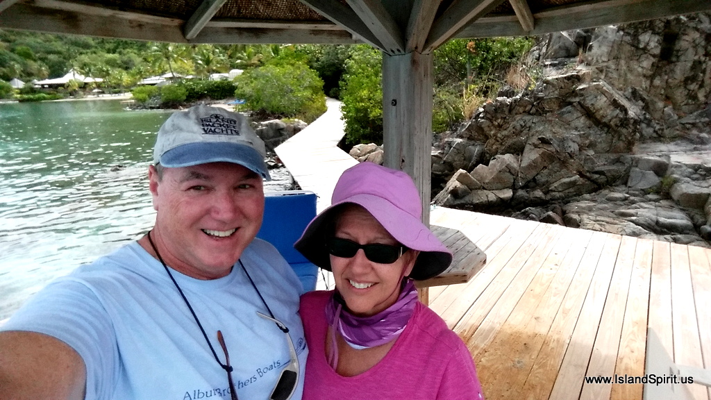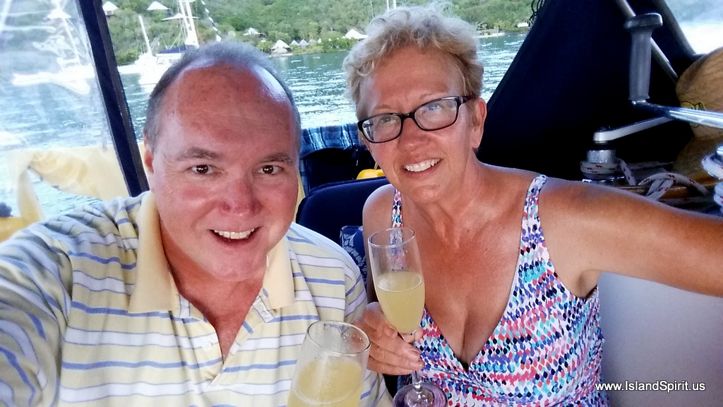 So, welcome to the Bitter End Yacht Club, we will try to do a photo essay on this location as you can see, it is very special to us and we really love it here. Here is our happy Champagne and OJ toast “selfie” with the BEYC over our sholders.