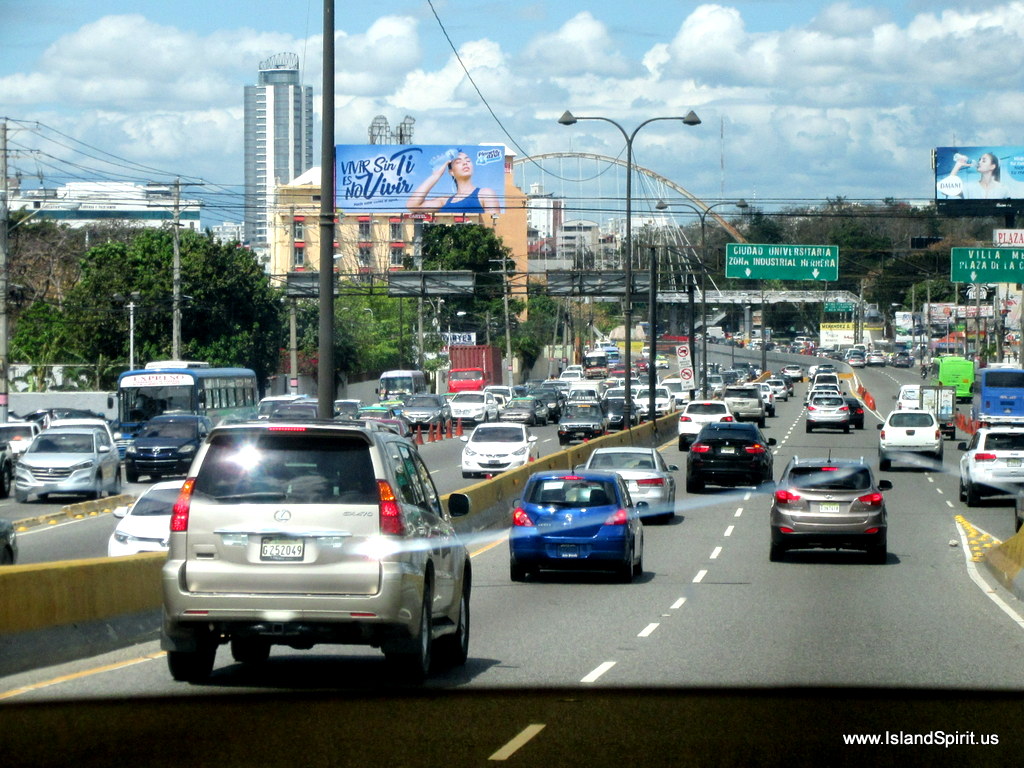 The next challenge was driving 3 hours from Samana to Santo Domingo and then finding our way around town. We crossed rice fields, rolling hills with cattle, river valleys, rugged mountain passes and finally into the metropolis of town. Once in Santo Domingo, it was C R A Z Y….like driving in NYC. Cars cutting us off, multiple lanes of traffic, signs in Spanish, treacherous culverts on the sides of the streets, children sprinting across the divided highways, few traffic lights and “Una Via” streets everywhere.