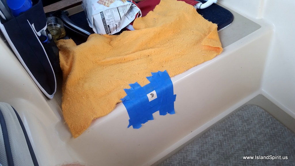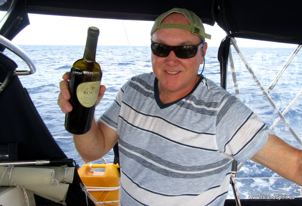 With all the motoring and the long distance, we decided to pour in three more jugs of fuel just to keep the tank more full than empty. Our tank’s motoring range is about 350 nm and this was only 250 nm so we were in no danger of running out. So, in this calm sea we easily could pour the fuel into the deck fill as there was no seawater running down the deck. Here is Hayden adding fuel.