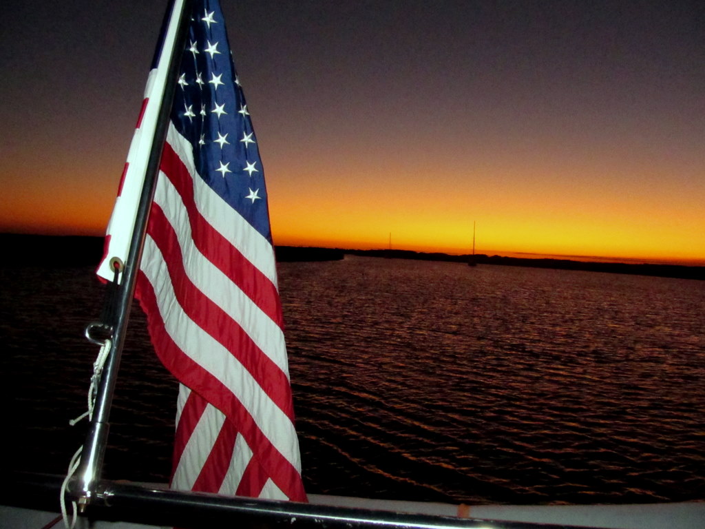 | Sunset over the stern of Island Spirit, Bass Creek |