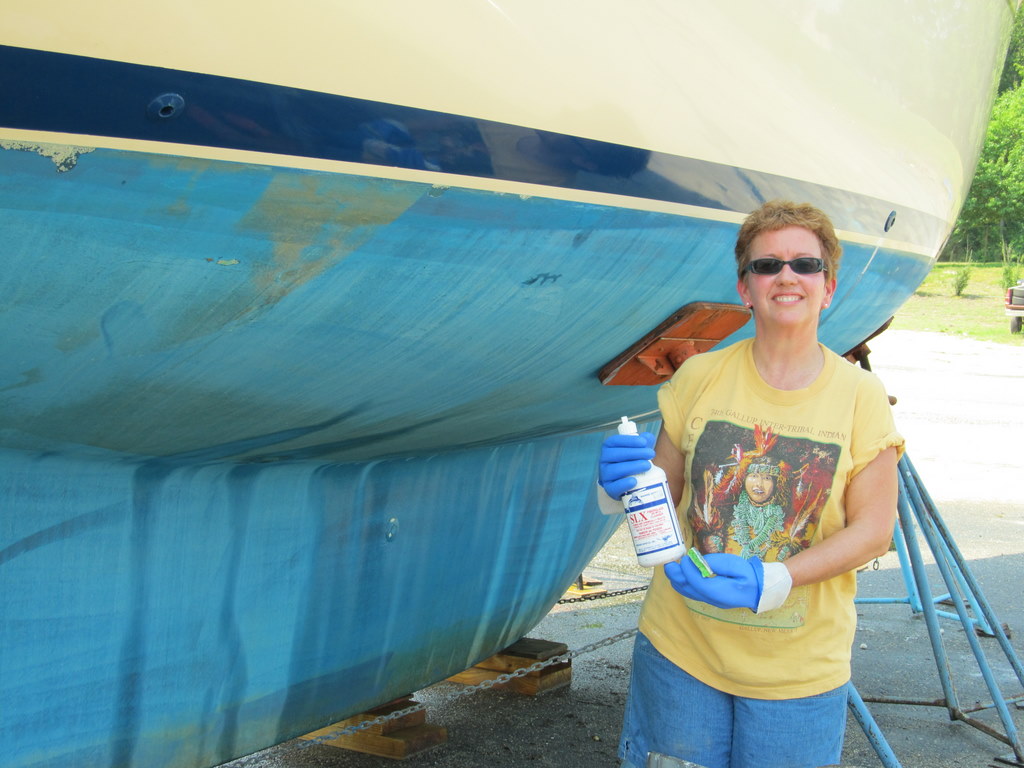 | Radeen helps with SLX fiberglass cleaner and etches and cleans the waterline |
