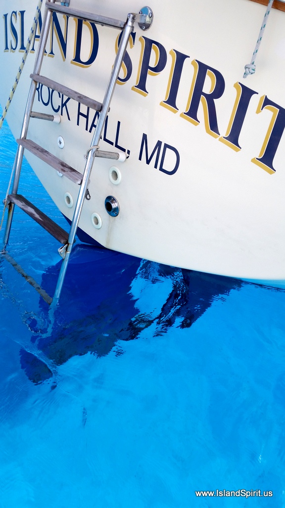 Hands down, Cooper Island Beach Club at Manchioneel Bay has the most blue blue clear waters of any harbor in the British Virgin Islands. You can see the bottom at 30-35 feet deep, you can see green turtles swimming past the boat along with many tropical fish. You can snorkel and dive right off your boat along with the dive instructors training new divers right in the harbor. Then to add to these great water activities, there is a beautiful reef on each end of the harbor which is a short dinghy ride away. There are national park moorings for dinghies so we do not damage the reef by dropping an anchor.