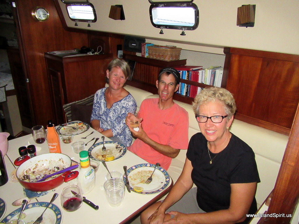 | Tanya and Jay of “Minx” with Radeen after Easter dinner aboard “Island Spirit.” |