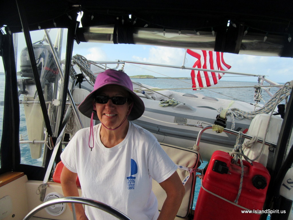 | …Radeen at the Helm as we leave Exumas… |