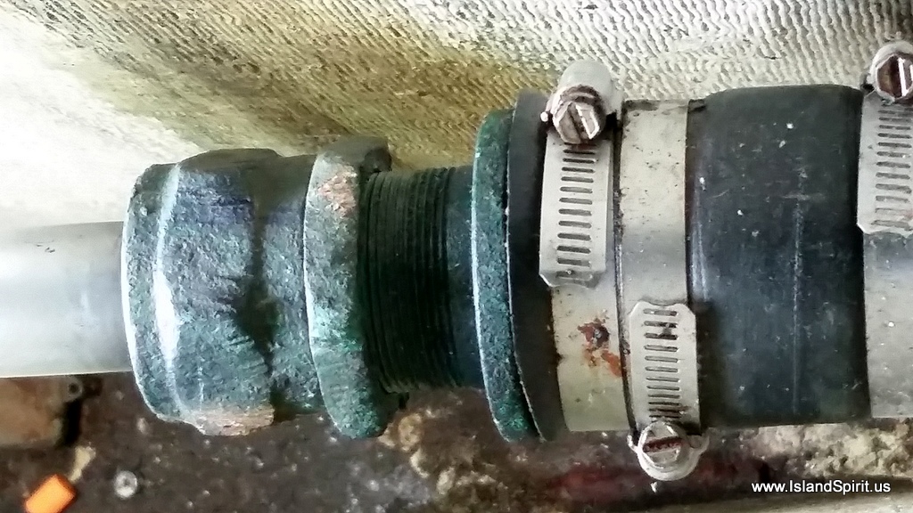 The final job was to repack the “stuffing box” which is really a cap nut around the propeller shaft. This cap nut is hollow and needs to be filled with a packing material. When this cap nut is threaded down against the fixed stern tube, it makes a water tight seal between the boat bilge and the spinning propeller shaft. This job requires you to loosen the cap nut, then, using dental picks, extract the old packing material, clean the area and then install new packing material. This all takes about 1-2 hours and it also brings out the most creative vocabulary due to the terrible working conditions. You need to be face down with your arms fully extended down into the bilge and there you work with tools and picks and wrenches repacking the “stuffing box!” What a pain in the butt. Next to rebuilding the head or sewer holding tank, THIS is one of the toughest jobs on a boat. We did it and it is finished.