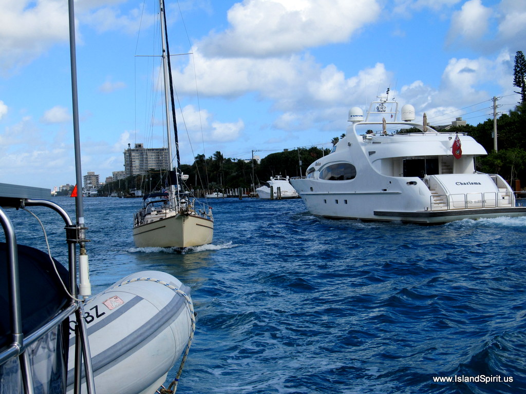 Delray Beach to Fort Lauderdale, Florida on the ICW presents a photographic delight, especially in the early am light. Lucky for us, we started off the day with an email from a fellow Island Packet 31 owner who sent us a photo of our boat as seen from his high rise balcony. That was VERY COOL. We stepped outside and looked around and sorta figured out the angle. We exchanged emails and shared our departure time and Glenn was able to take this fantastic photo of Island Spirit as we headed south on the waterway. THANK YOU GLENN, the photos are a real treasure.