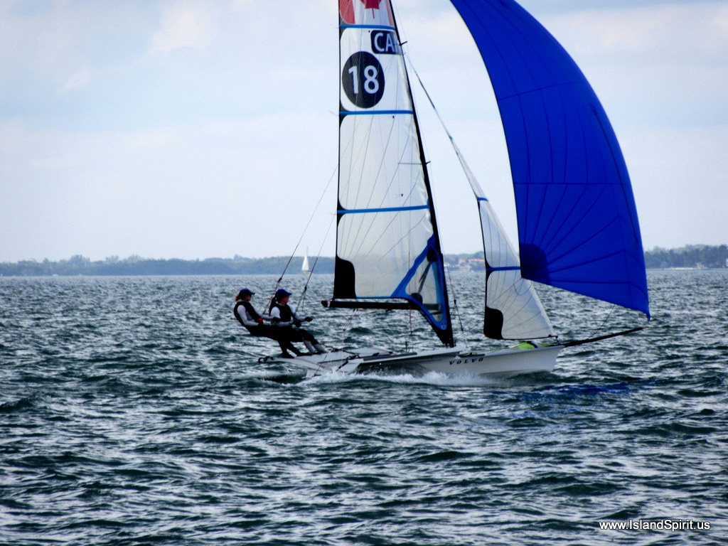 Now, to top off the visit, Fred and Gail were lucky enough to be here for the Miami World Cup Sailing Event where the best of the best from all over the world meet in Miami to determine Olympic qualifiers. We have Lasers, 420s, Finns and 49ers. As luck would have it, as we sailed back north on Tuesday we were able to place Island Spirit directly on the starting line for the Laser start. We counted 80+ boats. Freddie being a race committee chairman of many races took the helm and expertly drove Island Spirit around to the pin end, one boat length off the start at exactly the starting gun. Then we motored up the course along with these world class sailors right up to the weather mark. Next, we stood off the weather mark and watched as the leaders rounder the mark. Amazing way to watch the race. Fred knew exactly where to position Island Spirit as to stay out of the way, but yet be right next to the racers. Photo Boy got these great shots….