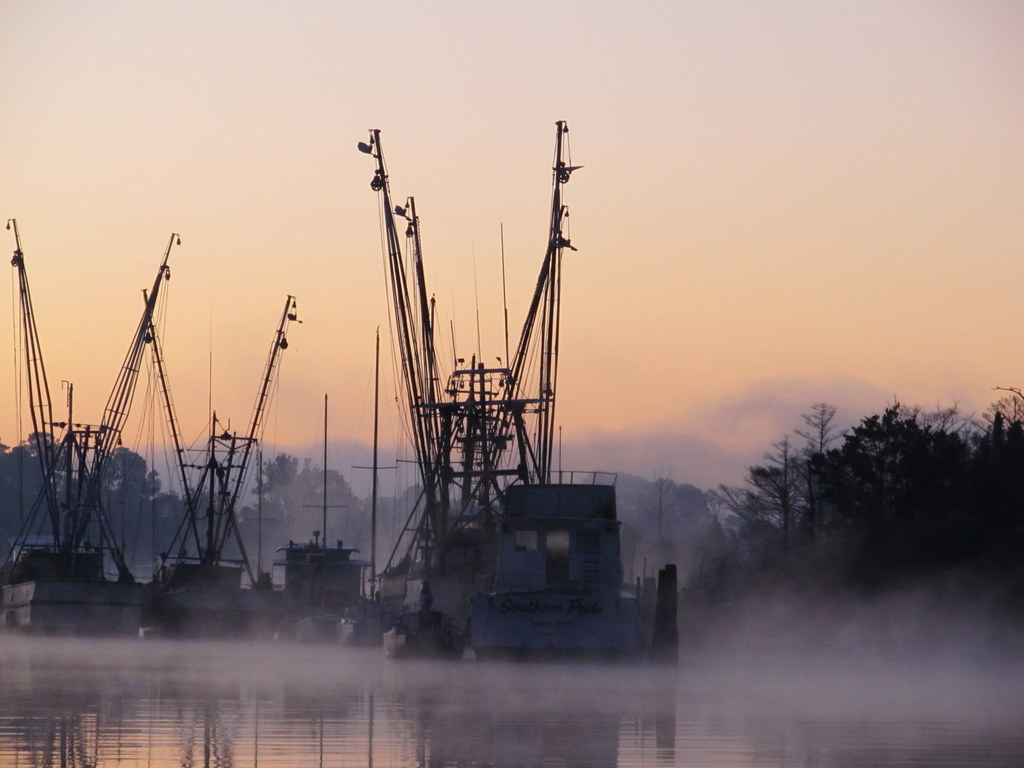 | 40 degree AM sea smoke engulfs the fishing & shrimping fleet |