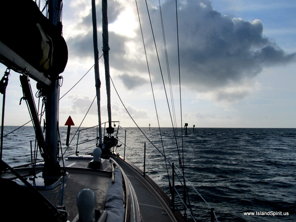 Hawk Channel 2012. This is our second time sailing SOUTH in the Hawk, and, once again, it did NOT disappoint us. Flat water 1-2, winds 10-15 and 50 miles of close reaching. Who can ask for more in the sailing world? Not us. We LOVE Hawk Channel. Yesterday, we departed Dinner Key at 1500 hrs and ran down Biscayne Bay to Elliott Cay where we dropped anchor in the dusk. Easy run. In the AM, we were underway by 0700 hrs and transiting Angelfish Creek by 0800 at high tide, perfect. Exiting the creek we found 6 feet 6 inches of water as we passed over the reef. Our boat needs 4 feet 6 inches, so not a problem.