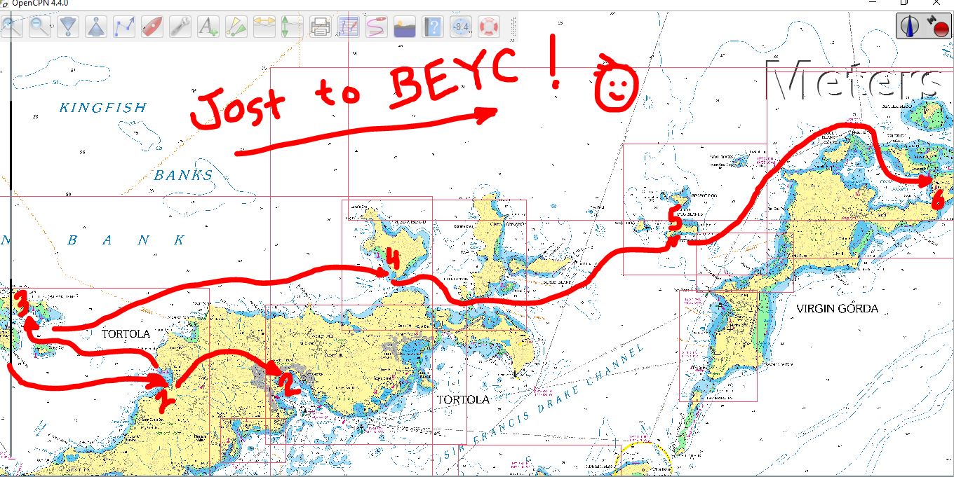 After some fantastic snorkeling at Monkey Point and after a bit of boat emergency repair of clearing the seawater intake hose and seacock from some plugged up seaweed we moved onto our second snorkeling point, at the Dogs where we picked up another mooring off Great Dog. Dropping into 30+ feet of water always give me a feeling of height and it makes me feel like I am looking off the roof edge of a very tall building. After this shock of the clarity and the depth is over, we headed over to the reef and enjoyed some large stag-horn coral formations and beautiful reefs. After this second snorkeling stop for the morning, it was time to continue on EAST, again, and move to North Sound where we all would take a break from moving our boats. Destination, the Bitter End Yacht Club….BEYC,