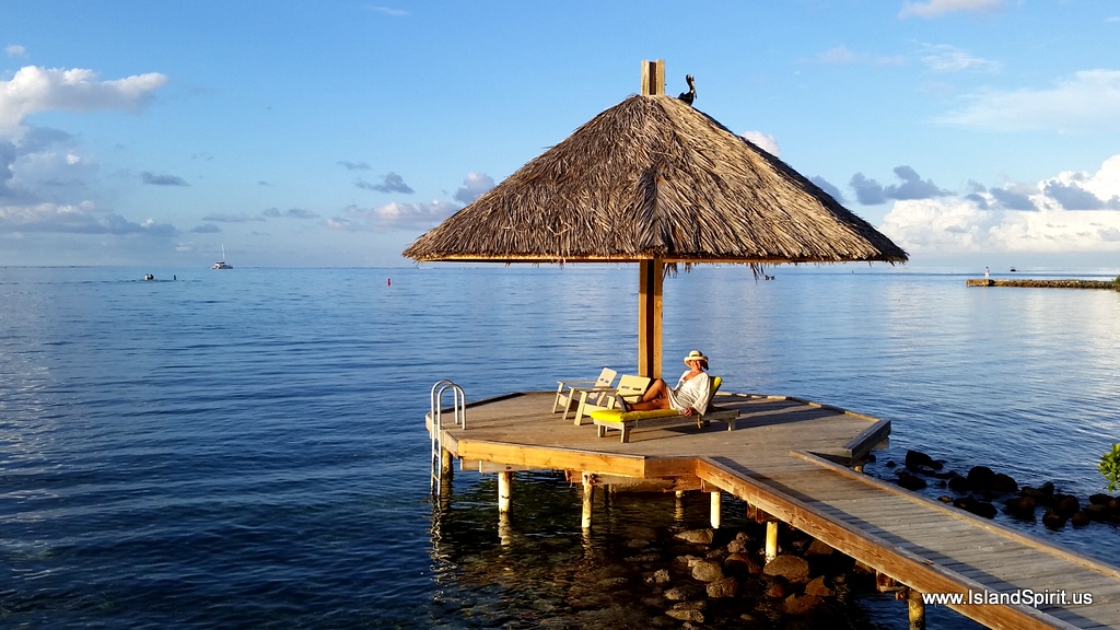 We have some high winds and high north swells (9-10 feet) forecasted for tomorrow so that is why we moved up to North Sound. We actually took a mooring ball with the Bitter End, thinking it would give us some access to services, but everything is an up charge: the pool, the showers, trash, etc, The only thing you get for your $35/night is the right to tie up to their mooring ball. So it is….we are still very happy to be right here one boat row off the shore and a very short dinghy ride to the beach and reefs. Matter of fact, this small dock with the pointed thatched roof was the location Radeen and I planned Mick and Dr. Deb’s weeding in 2001. Then the next day, I nearly killed Mick sailing him on the Hobie Cat which we flipped and Mick could NOT swim! OMG that was scary. I did not know….