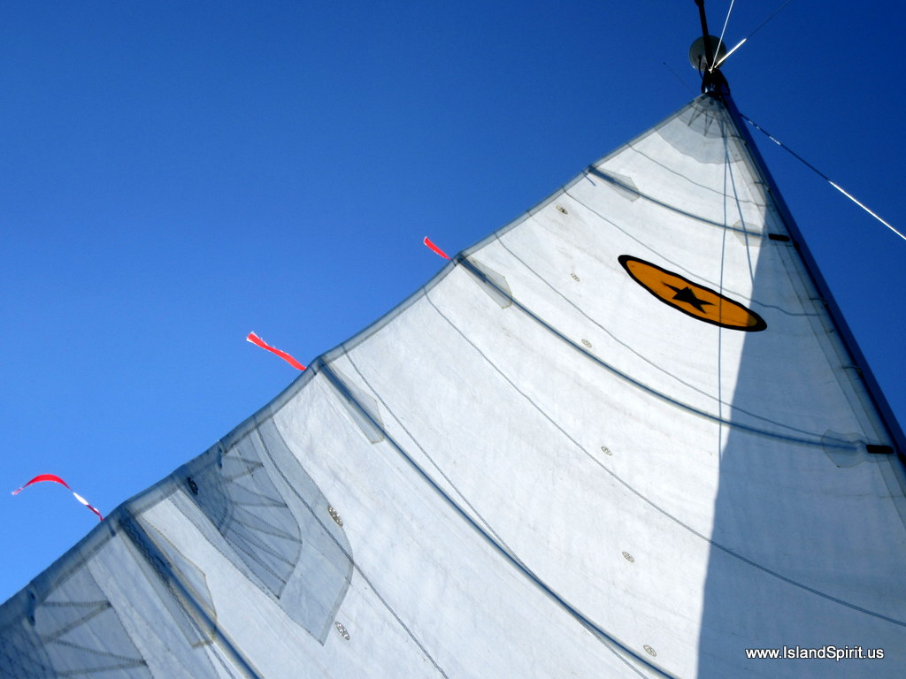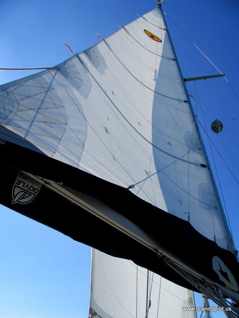 | Once at sea, full sail set and motor sailing at 7.5 knots |