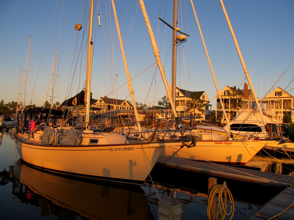 Departing Belhaven, we sailed down the Pamilco Sound heading to Oriental, NC….BUT….we could not withstand the draw of the newest planned community called River Dunes! This community has the most beautiful marina, clubhouse, bathhouse, workout rooms, pool, hot tubs and manicured grounds in the area. Se we diverted and used our Buy one Get one Free card given to us at the Annapolis MD Boatshow for two nights of dockage and relaxation. Unfortunately the restaurant and bar are closed during the week and only open on Fri, Sat, Sun and we arrived on a Tuesday…oops! No worries, as we had the entire place to ourselves and they also provide a free car for your use if you dock here. So, we used the free car to run into Oriental, NC to see Penny and go out for a nice lunch at M&Ms where we also bumped into another friend and IP owner named John. John lives aboard in town and was at M&Ms when we stopped in. We enjoyed a nice visit and a wonderful lunch. Oriental is a popular sailing town and many cruisers retire to this town where they still can be connected to the cruising community. It is amazing how closely connected the cruising community is as we are always bumping into boats we recognize or people we know all along the way. What a great life….sail on…