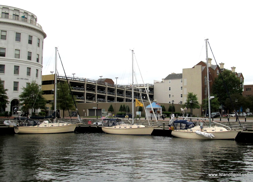 Our stay in Portsmouth was wonderful as always. It was especially nice as an Island Packet Yachts minivous developed with IP38 It’s About Time (Sally and Conrad) and IP350 Kismet (Laurie and Jim) and visiting IP380 Tides Inn (Sue and Mark) joined us all in the South Ferry Basin. We enjoyed happy hour on Island Island Spirit and then strolled up High Street a few blocks to the Commodore Dinner Theater to see, the new movie “Trouble With the Curve.” Then we returned to IP38, after the movie, and sampled the Nassau Royale Rum to make sure it was still OK to consume…it was. There is something special about gathering on friends’ boats, sharing some stories and learning about the cruising life. Everyone has so much to share and we value and treasure these Island Packet gatherings.