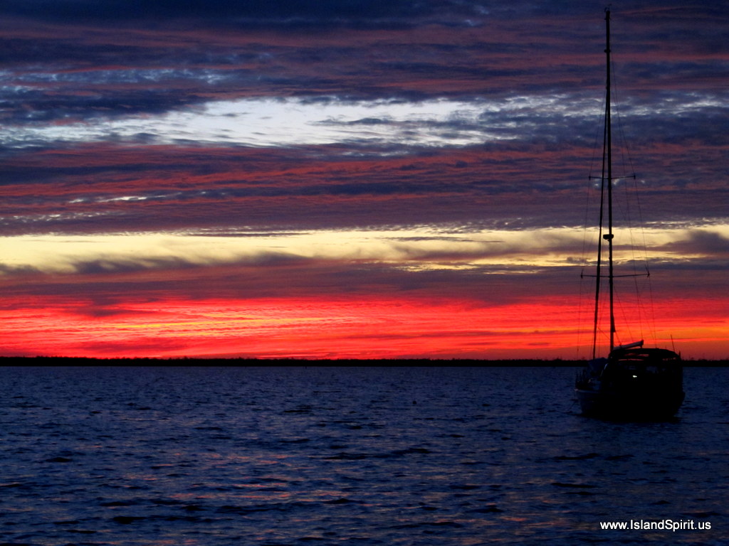 | Sunset on Island Spirit at anchor |